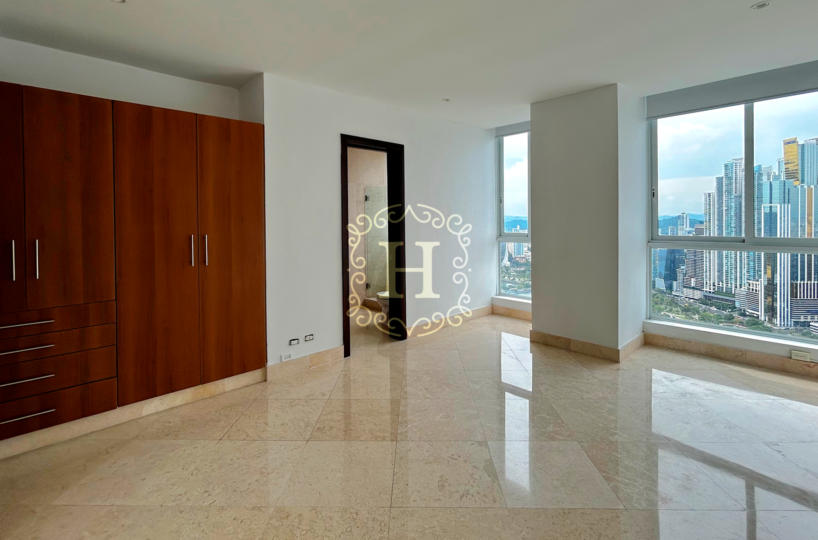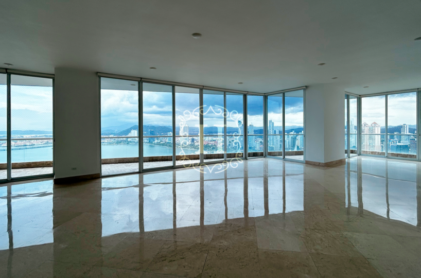 Impresionante apartamento con vistas al mar de 500 m² y balcón en The Point, reconocido por CEMEX como la torre residencial más alta de América Latina. Ambientada en el punto más exclusivo de Punta Paitilla, ofrece impresionantes vistas de 360° de la ciudad. Ofrece 4 dormitorios, 4,5 baños, habitación de empleada doméstica, 3 plazas de aparcamiento y interiores luminosos y espaciosos. Las comodidades incluyen aparcacoches, piscinas climatizadas, gimnasio, spa, zonas infantiles, sala de juegos, squash/racquetball, jardines y seguridad 24/7.