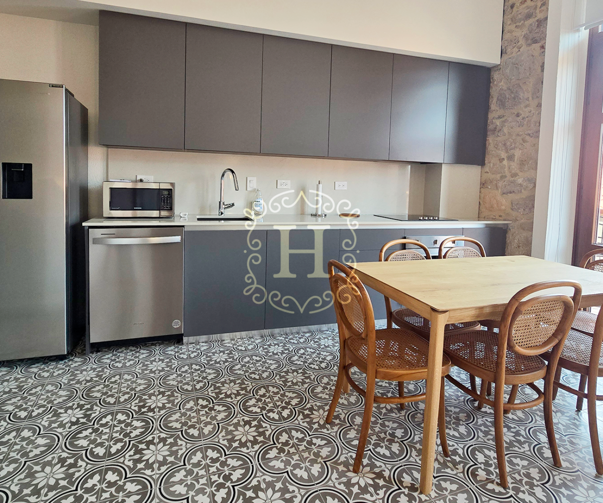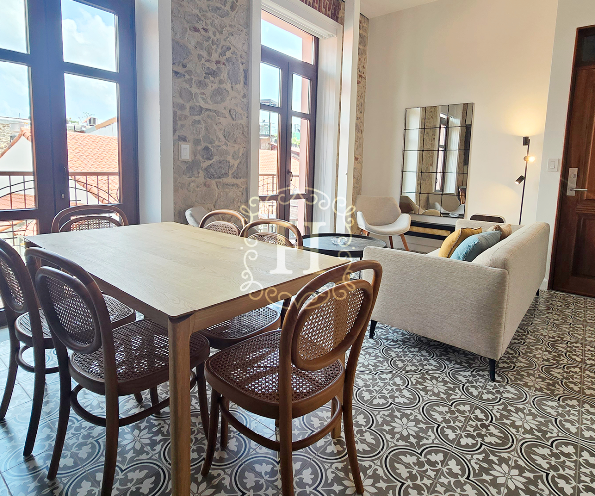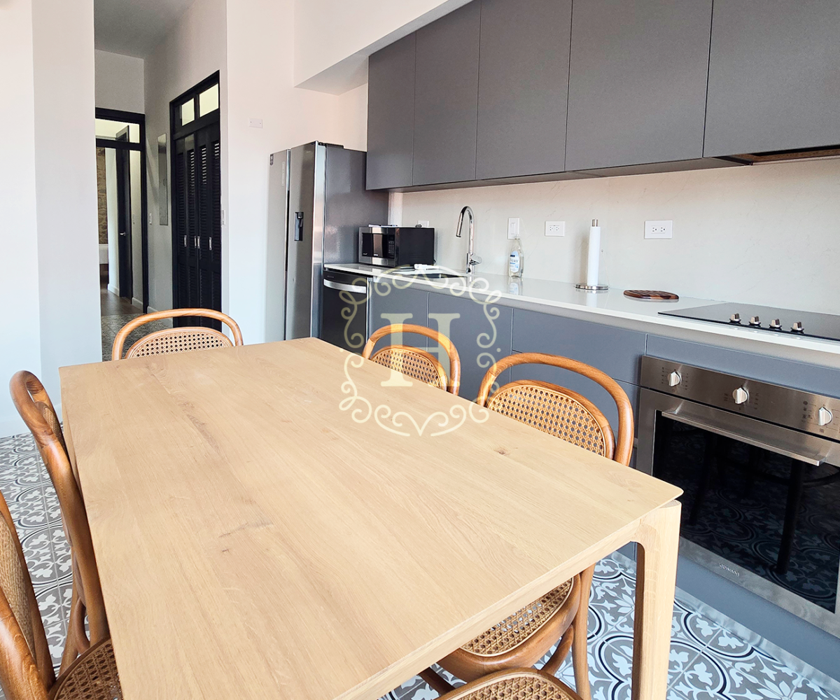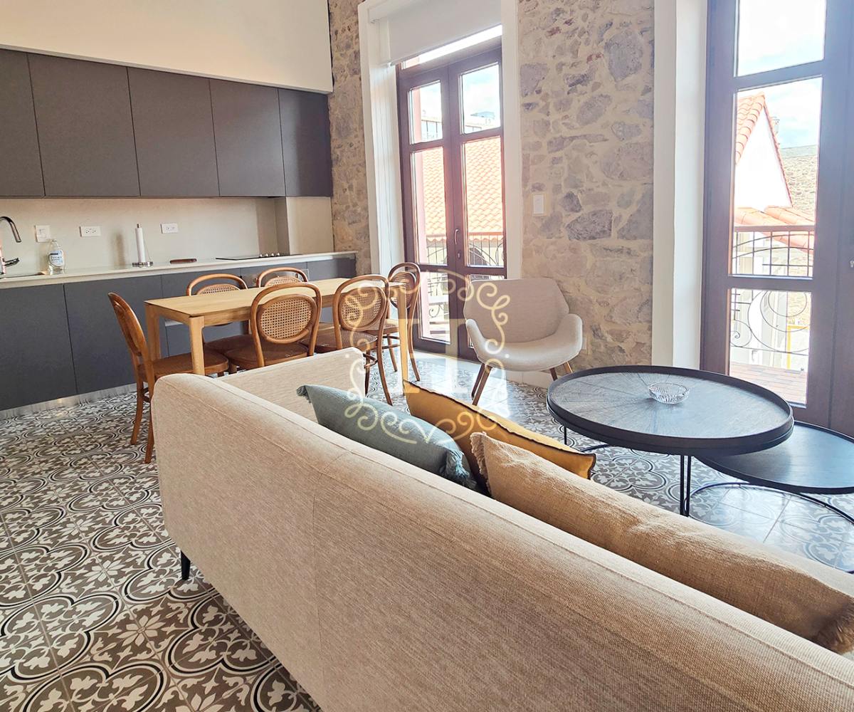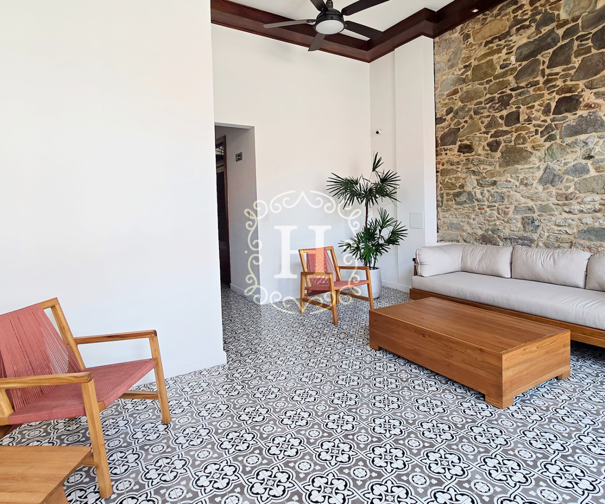 Totalmente renovado y elegantemente amueblado, el interior presenta finas piezas importadas de Indonesia junto con diseños selectos de Tempo Design y Boconcept, creando un ambiente sofisticado y acogedor.