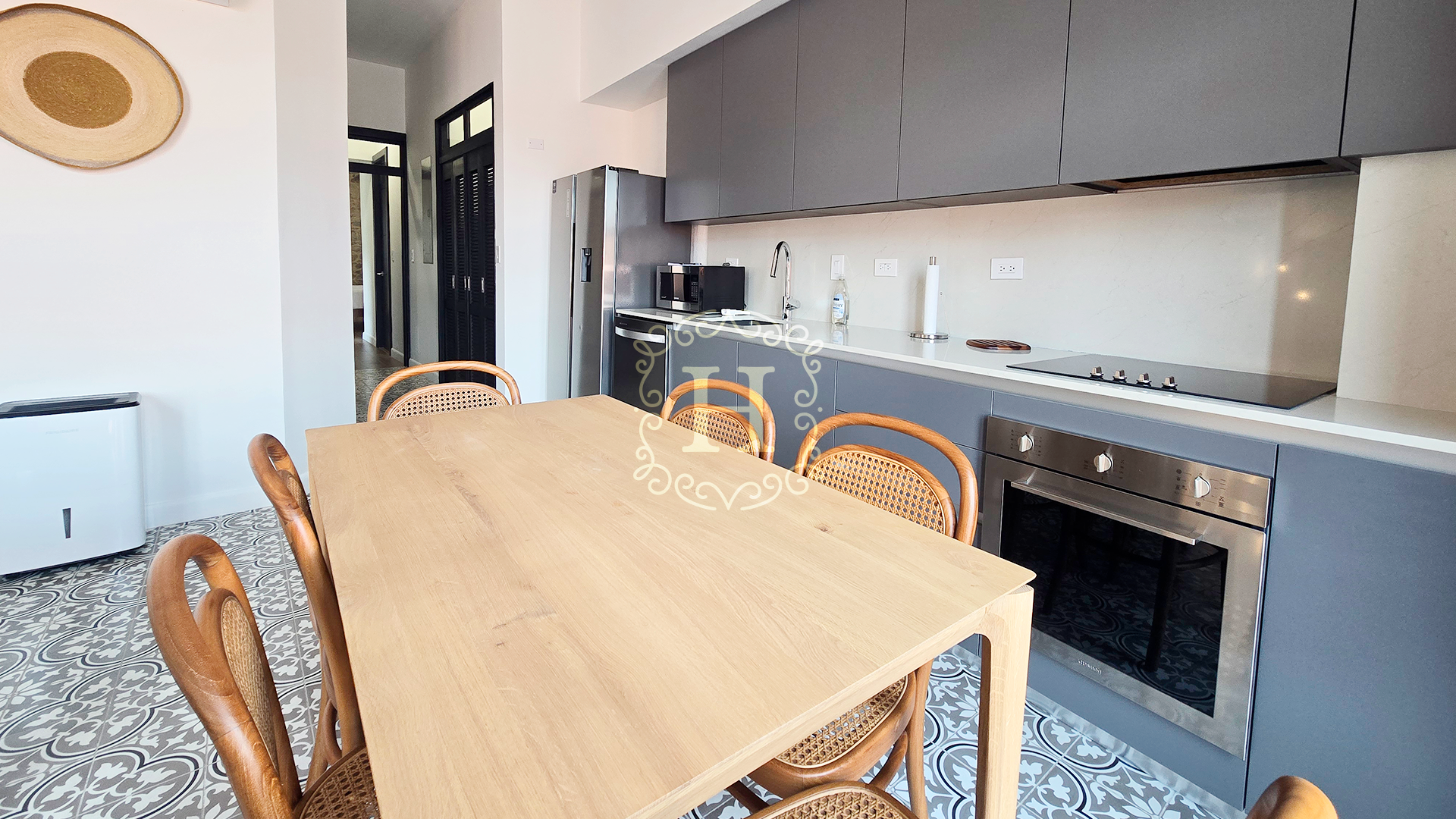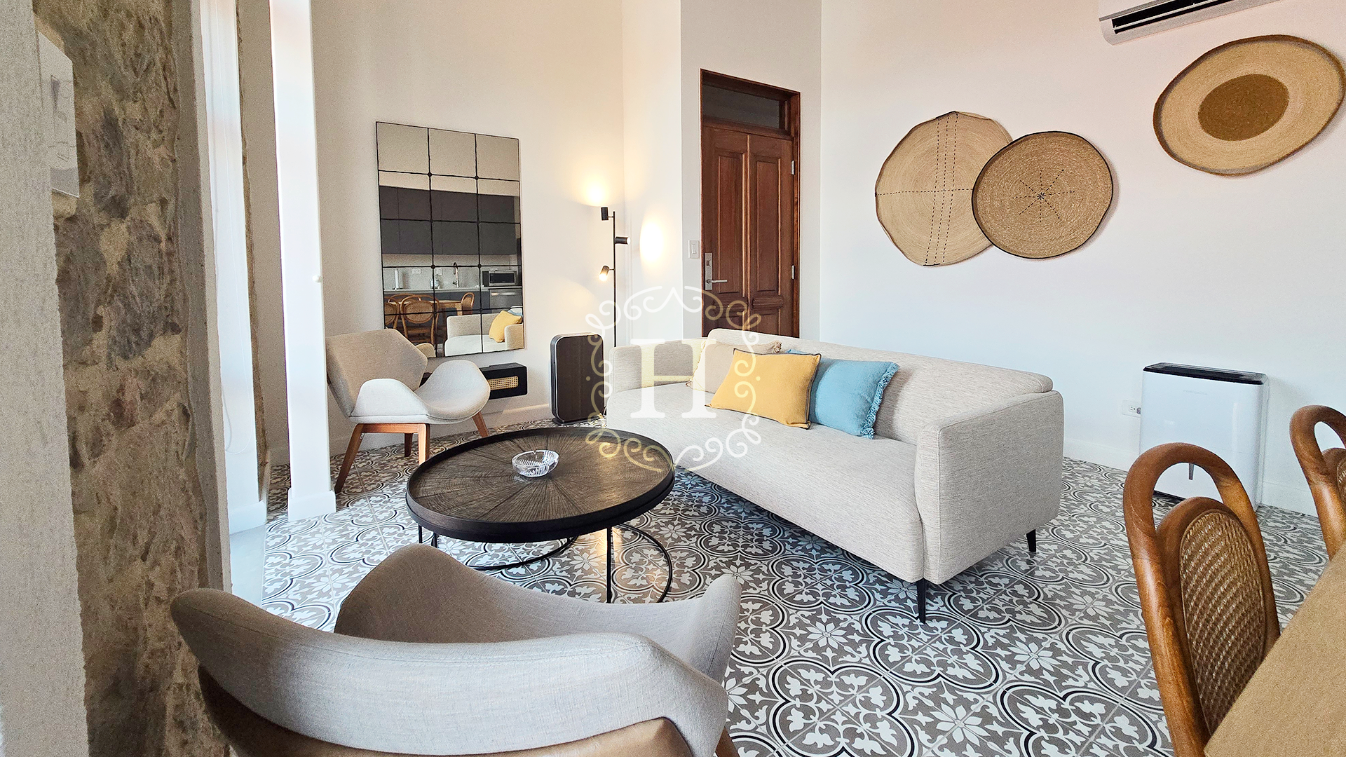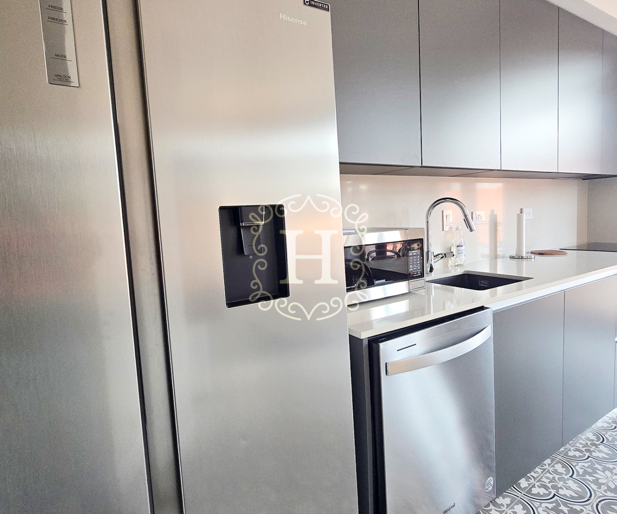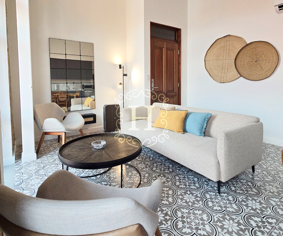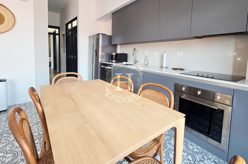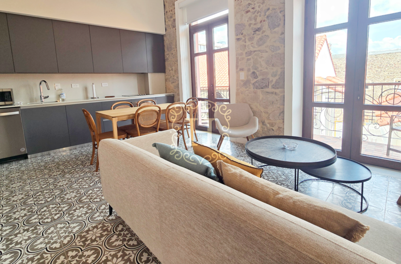 Totalmente renovado y elegantemente amueblado, el interior presenta finas piezas importadas de Indonesia junto con diseños selectos de Tempo Design y Boconcept, creando un ambiente sofisticado y acogedor.