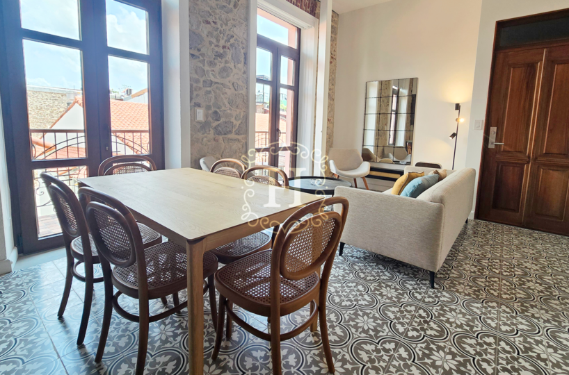 En el corazón del Casco Viejo, dentro de un edificio histórico que data de 1914 y meticulosamente restaurado para preservar su cantería original, se encuentra una residencia verdaderamente única que combina el carácter atemporal con el lujo contemporáneo.