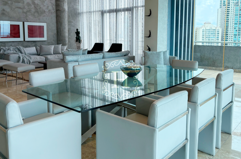 This exceptional 410 m² luxury Ocean View apartment is located on a high floor in Torre del Parque, Paitilla, directly facing the park and offering an elegant blend of space, privacy, and refined living.