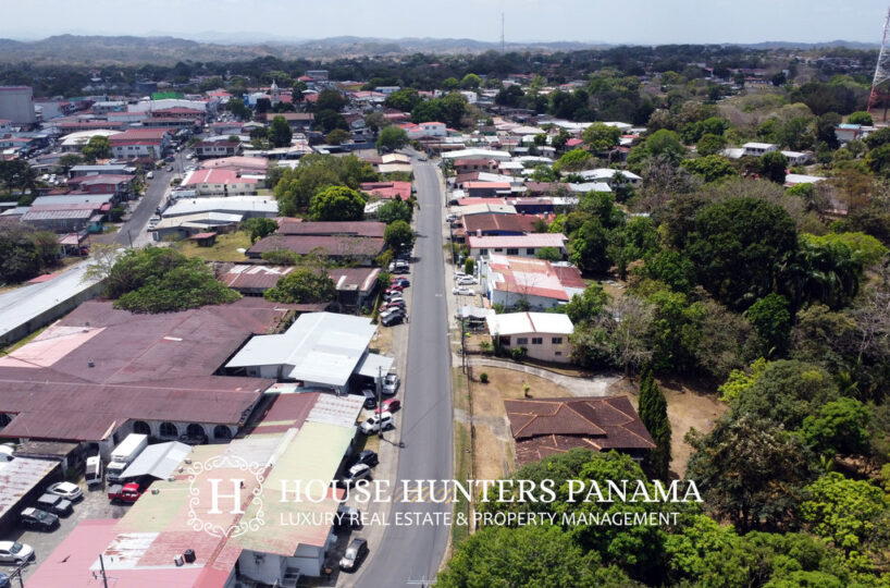 Esta propiedad de inversión en Santiago Panamá está situada en el vibrante corazón de la ciudad, a solo unas pocas manzanas de la plaza central, el parque principal, las universidades y una iglesia histórica. Su ubicación central dentro de la cuadrícula urbana crea relevancia inmediata para los promotores que buscan visibilidad, accesibilidad y actividad peatonal constante. Este sitio está orientado a compradores que buscan terrenos comerciales en Santiago Panamá que apoyen conceptos residenciales o comerciales escalables.