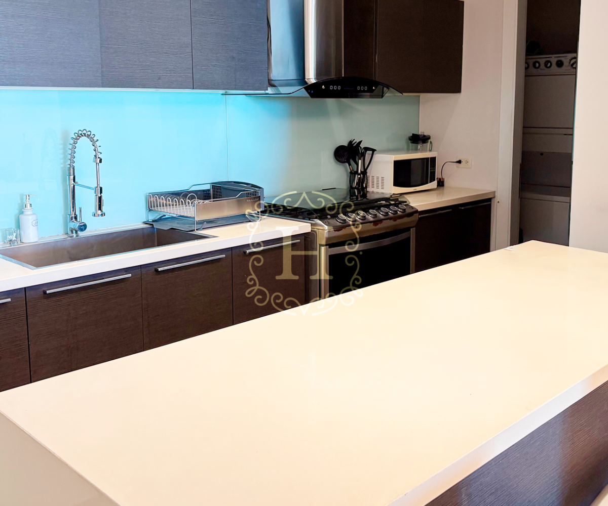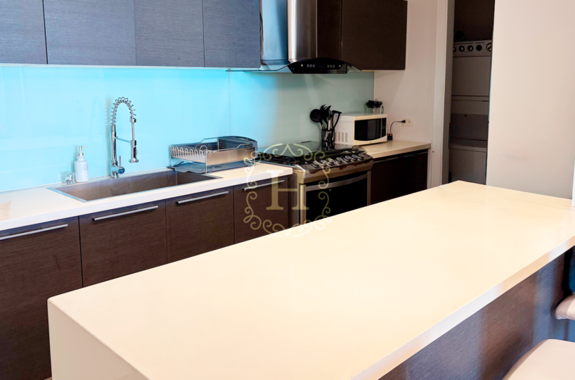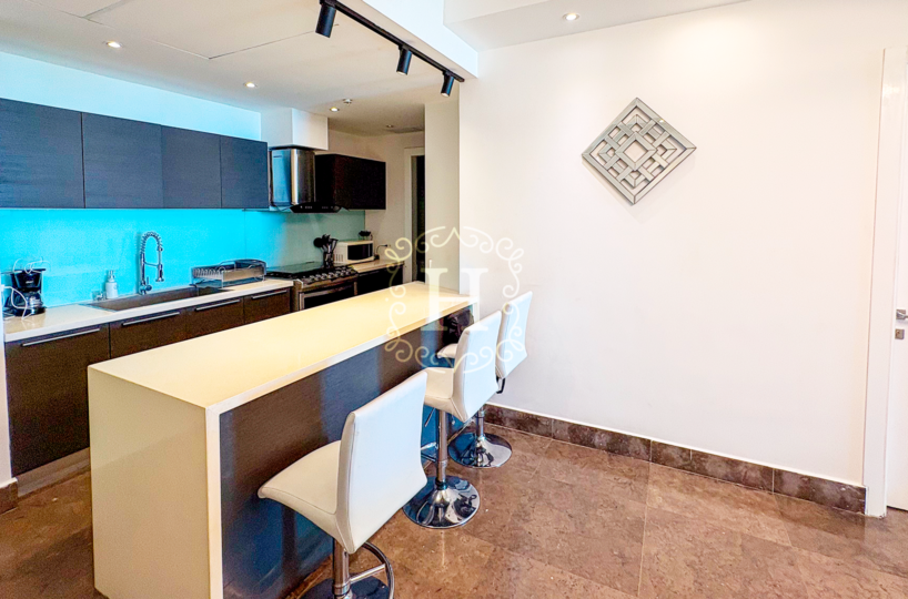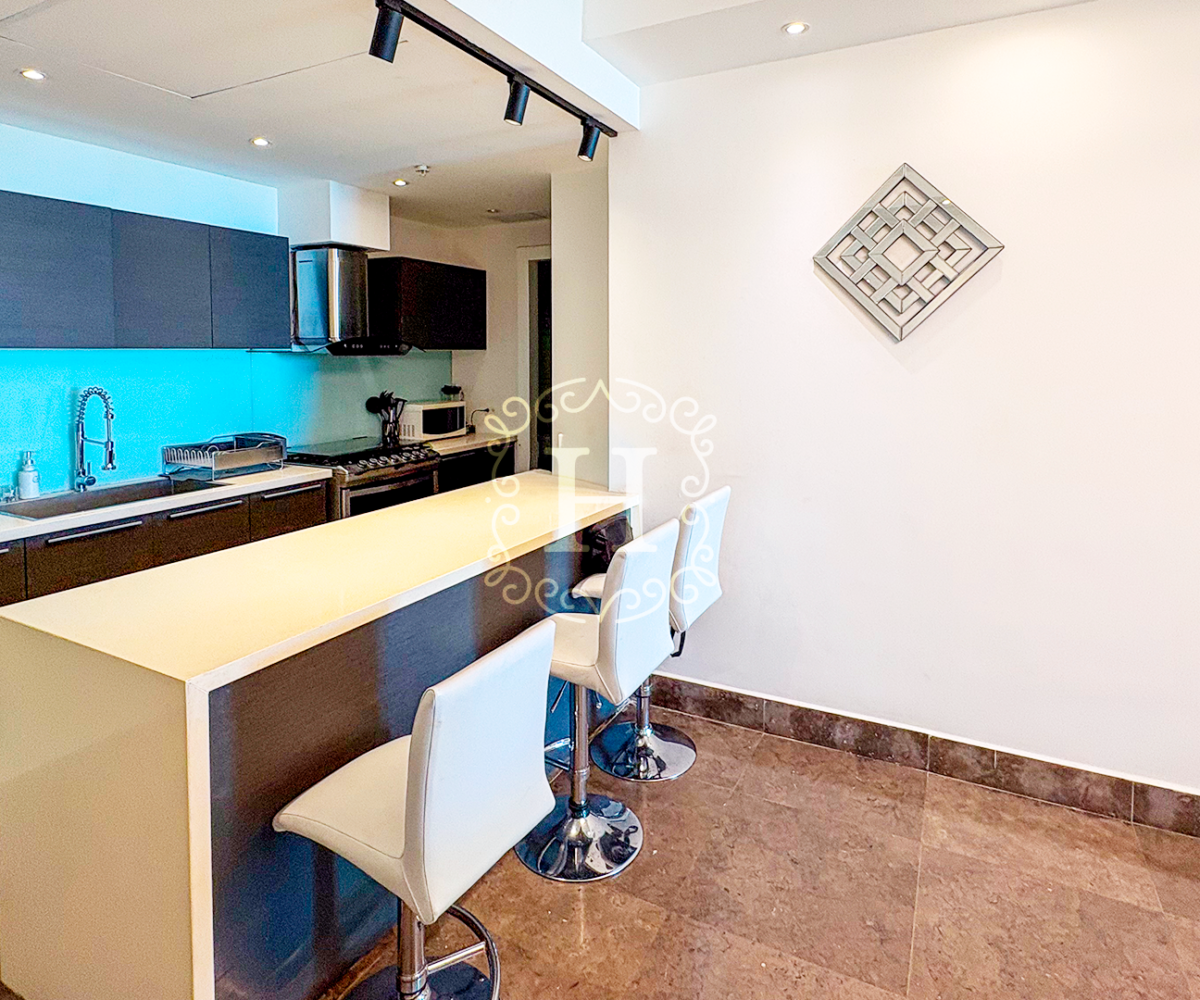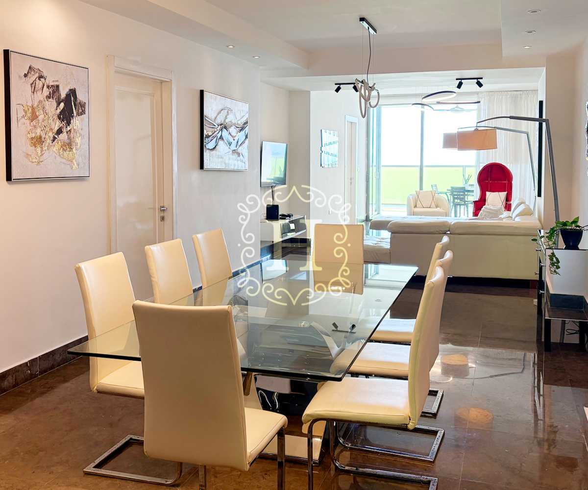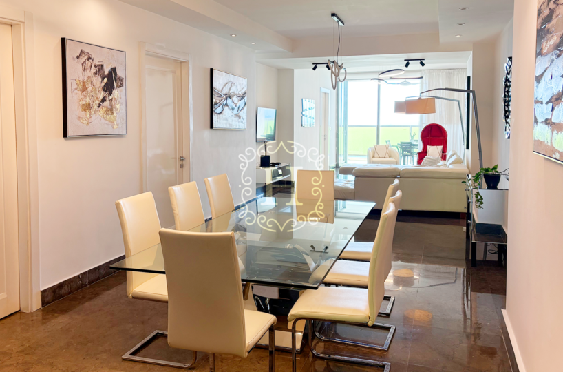 This beautifully distributed residence features an open and contemporary layout with floor-to-ceiling windows that fill the space with natural light. The expansive living and dining area connects seamlessly to the balcony, creating the perfect setting for entertaining or enjoying the panoramic city and ocean views. The modern kitchen comes fully equipped with high-end appliances and designer finishes.