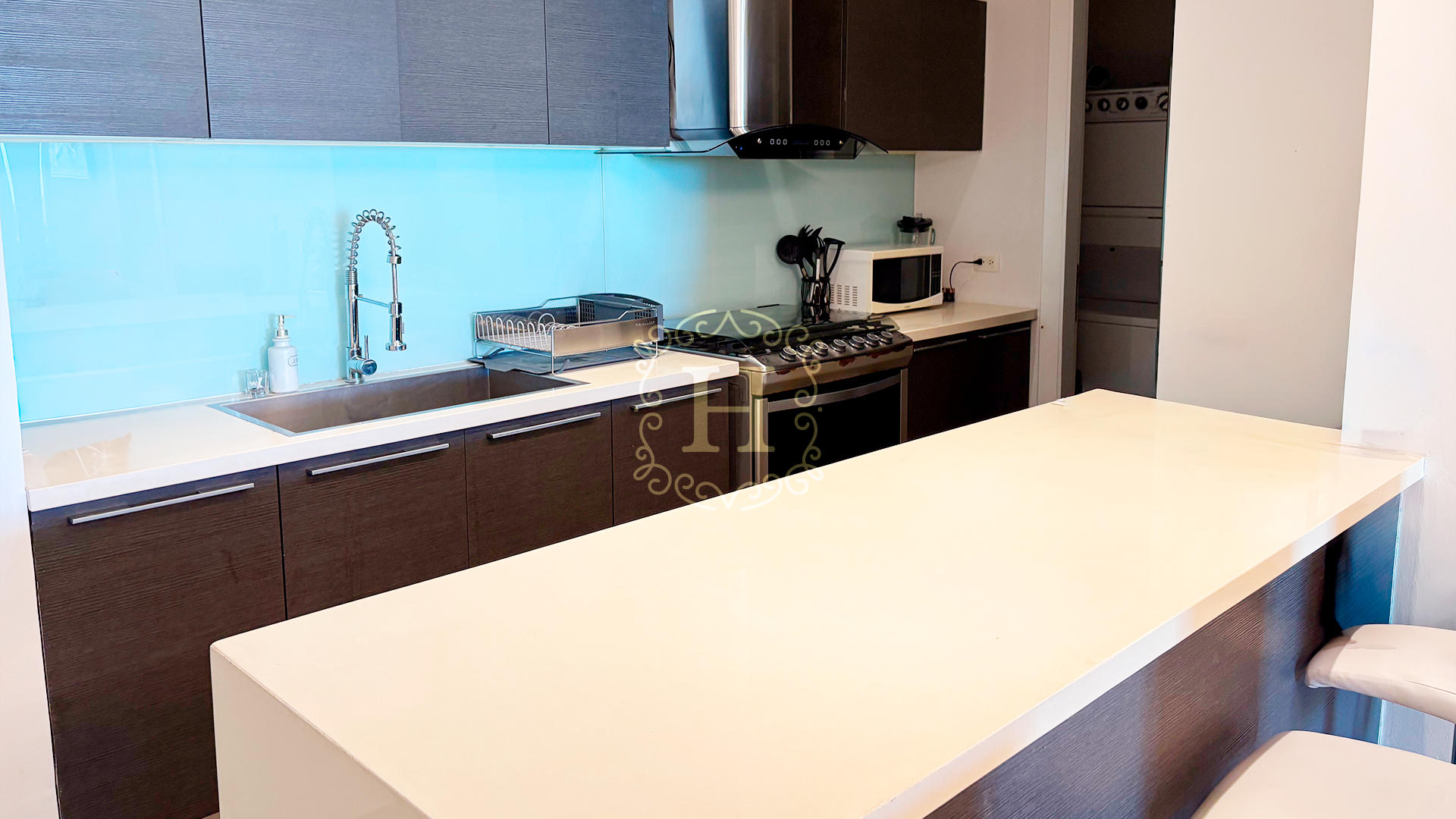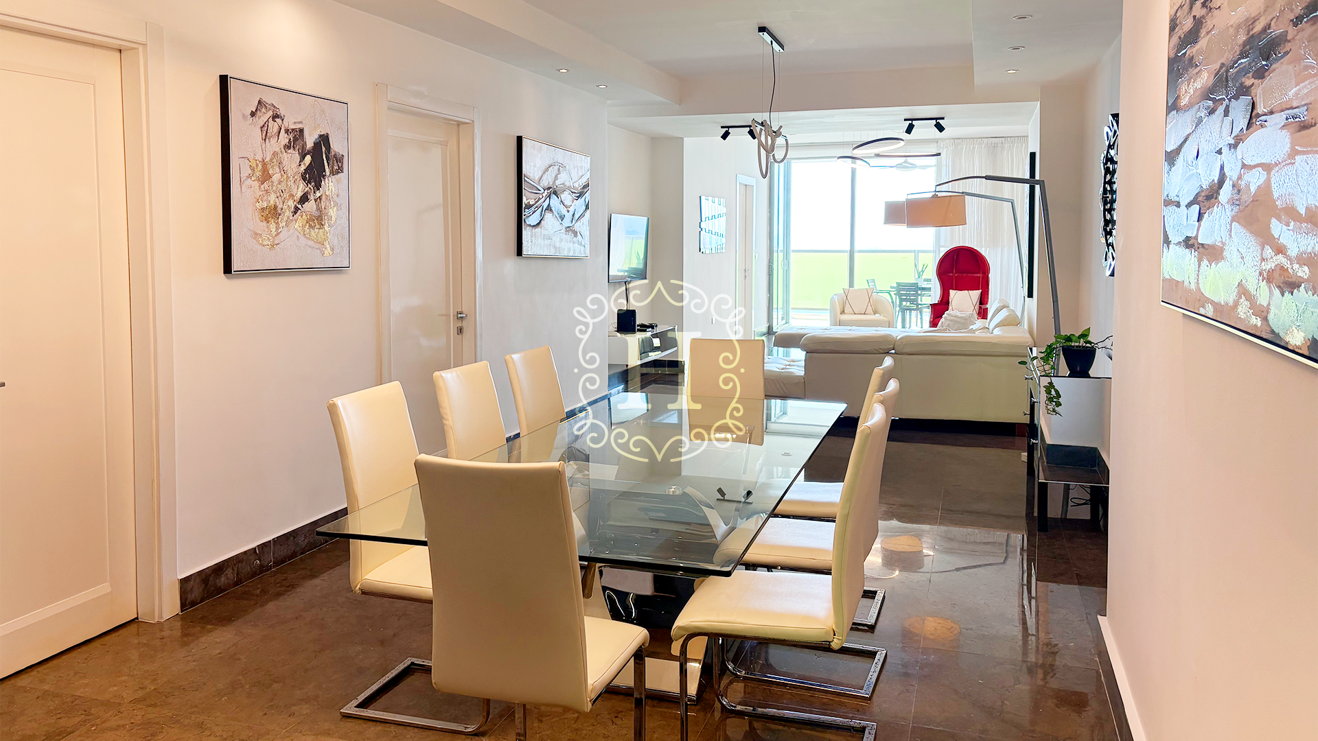 This beautifully distributed residence features an open and contemporary layout with floor-to-ceiling windows that fill the space with natural light. The expansive living and dining area connects seamlessly to the balcony, creating the perfect setting for entertaining or enjoying the panoramic city and ocean views. The modern kitchen comes fully equipped with high-end appliances and designer finishes.