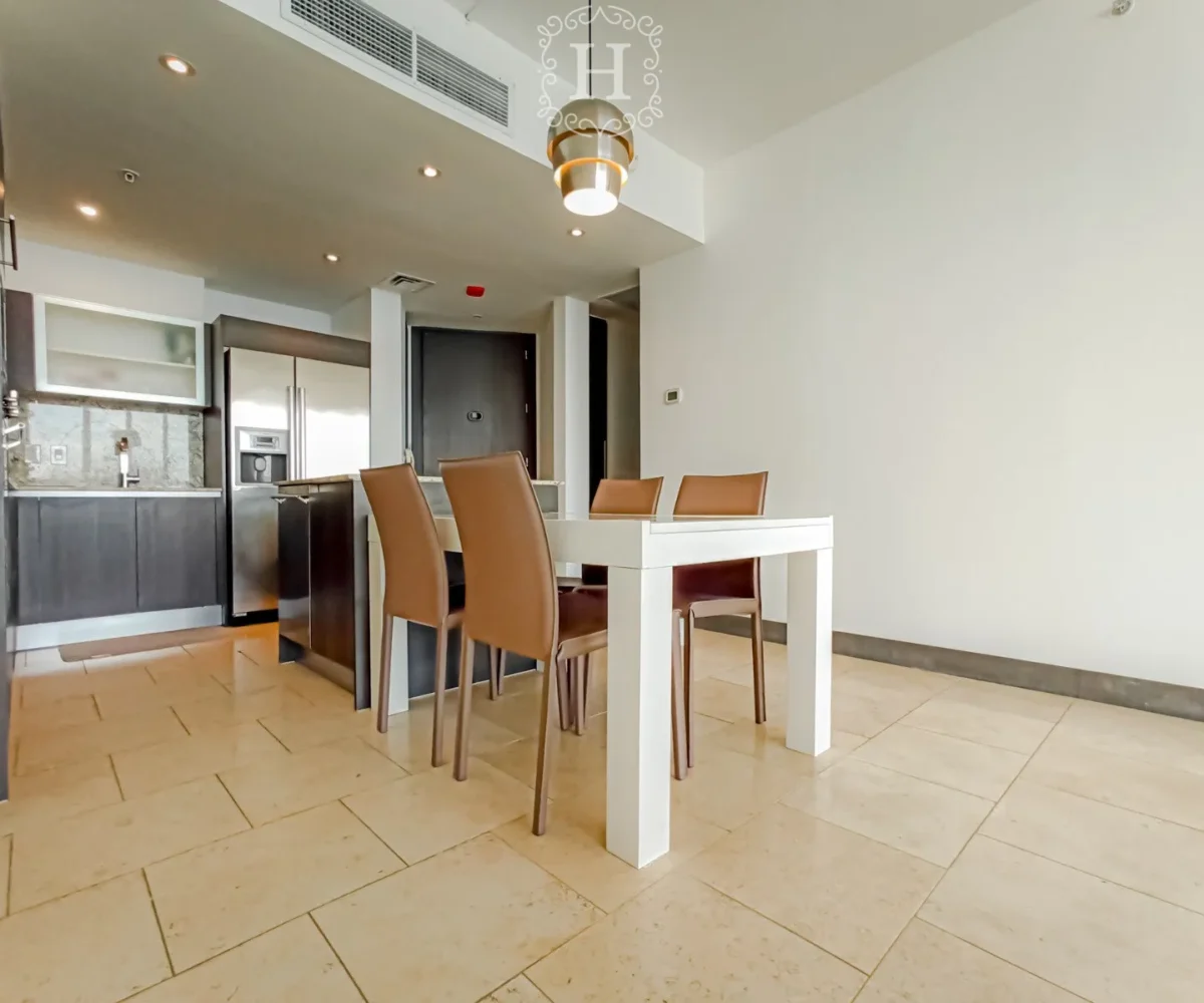 The floor plan is designed to maximize usable space while maintaining an open and welcoming atmosphere. The kitchen connects naturally with the main living areas, making the apartment practical for daily living and entertaining. The balcony extends the interior experience with fresh air and views of the water.